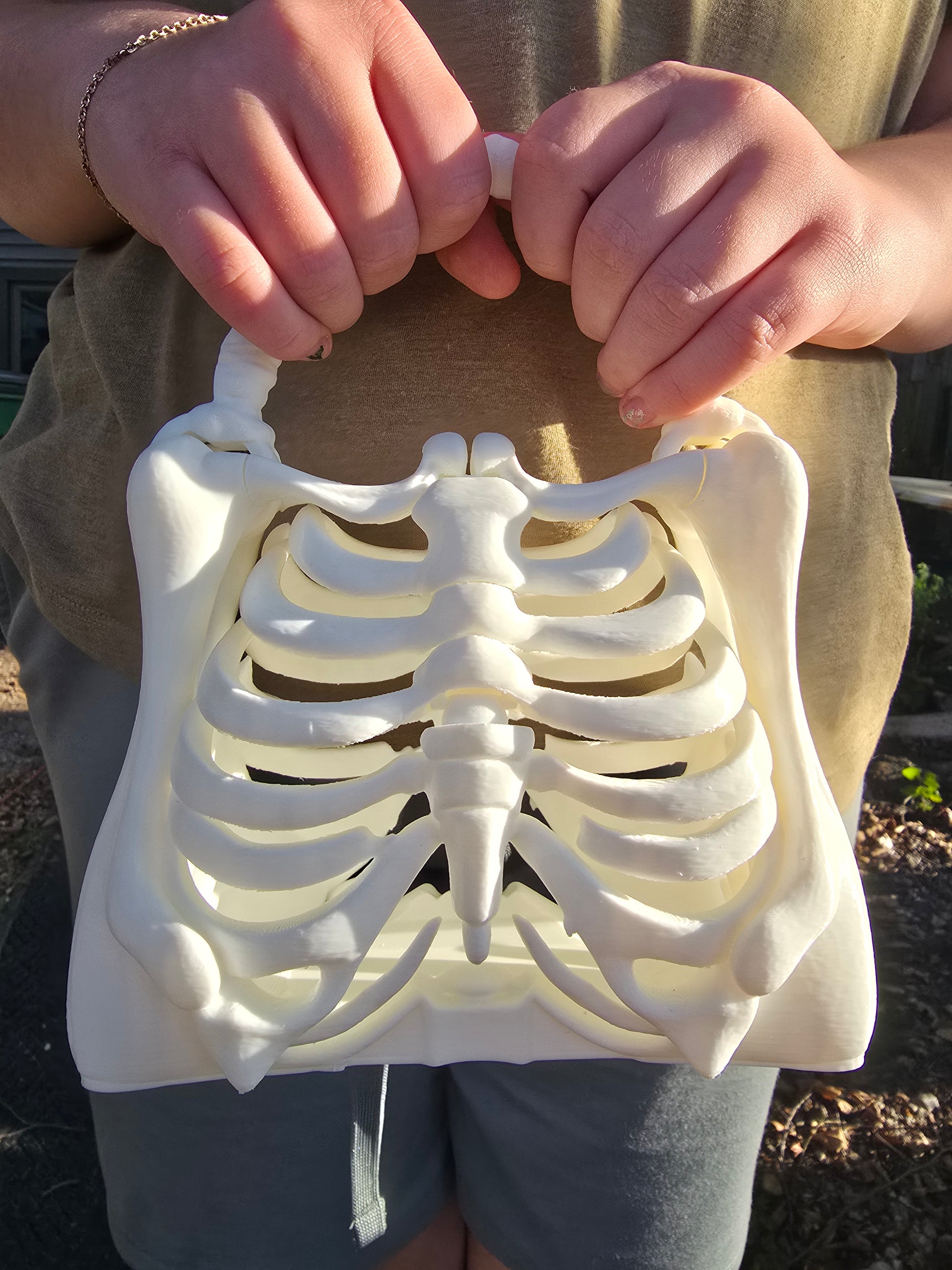 Make a bold statement this Halloween with the Mini Bone Bag. Made by our Widow's Fate Printing division, this 3D printed plastic accessory is guaranteed to catch eyes and surprise your mortal friends. Available in two sizes and three colors, the bag measures approximately 6.5" long, 9" tall, and 3.5" wide—perfect for adding a daring touch to your look.